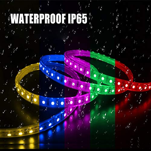 【Striscia LED impermeabile IP65】 Il tubo in PVC impermeabile protegge i LED da polvere e gocce d'acqua, può essere installato all'interno e all'esterno. (Entrambe le estremità della striscia LED e il cavo di alimentazione devono essere tenuti asciutti)