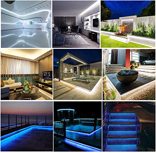 XUNATA Striscia LED 3014 con interruttore, cavo di alimentazione da 3 metri 220 V, IP65, impermeabile, illuminazione blu, 19 m