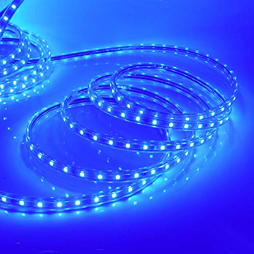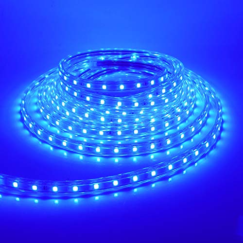XUNATA - Striscia LED da 220 V 5050, con interruttore, 60 LED/m, luci blu, IP67, impermeabile, scala da soffitto bianca, striscia di LED per cucina Lights- 1 metro