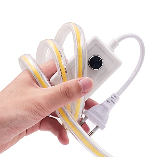 XUNATA Striscia LED COB Dimmerabile 220V con Interruttore, Alta luminosità 360 LED/m, IP65 impermeabile, Nastri LED Flessibile Luce a corda (4m, Bianco Caldo)