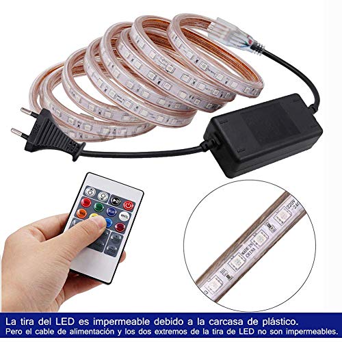 Xunata 18m Striscia LED RGB con Telecomando a 20 Tasti, 220V 5050 Strisce Impermeable, Dimmerabile, Cambio Colore, Flash Leggero e Fermo, con Alimentatore- 60 LED/m
