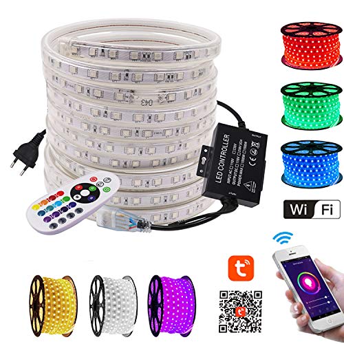 XUNATA Striscia LED WiFi RGB 220 V, impermeabile e flessibile, musica smartphone/1500 W controllo remoto/applicazione Alex Google Assistant(50 metri, 60 LED/m)