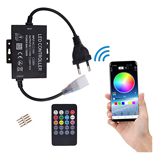 XUNATA Telecomando IR a 24 Tasti + Versione Bluetooth Adattatore di Alimentazione Spina Europea per Luce al Neon a Strisce LED RGB- 1500W