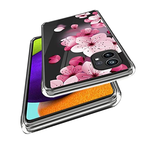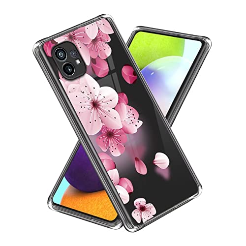 Xunlaixin Custodia Cover per Nothing Phone 1 con Pellicola Vetro Temperato, Ultra Sottile Trasparente TPU Silicone Bumper Antiurto Protettiva Case (Fiore di Pesco)