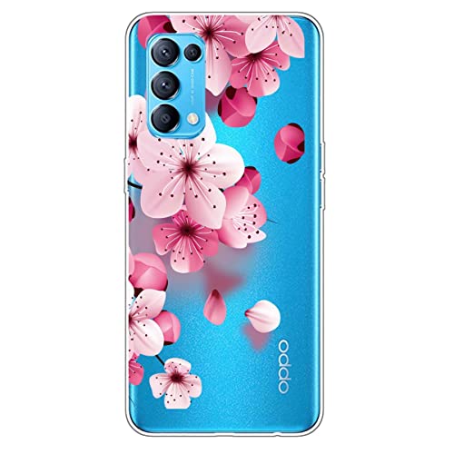 Xunlaixin Custodia Cover per Oppo Find X3 Lite con Pellicola Vetro Temperato, Ultra Sottile Trasparente TPU Silicone Bumper Antiurto Protettiva Case (Fiore di Pesco)