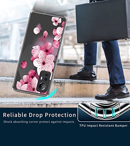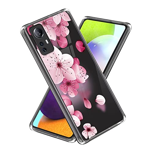 Xunlaixin Custodia Cover per Xiaomi 12 Lite 5G con Pellicola Vetro Temperato, Ultra Sottile Trasparente TPU Silicone Bumper Antiurto Protettiva Case (Fiore di Pesco)