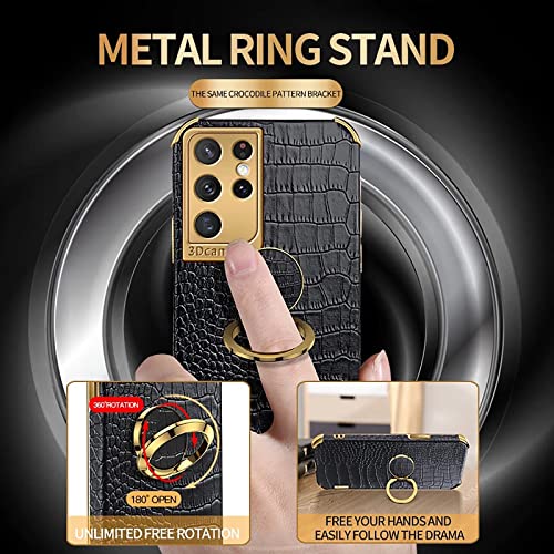 XWCG Ultrasottile Coccodrillo Modello Custodia per Samsung Galaxy S22/S22 Ultra Antiurto con 360°Regolabile Anello Cover Magnetica Vera Pelle Custodia,Bianca,for Samsung S22Ultra