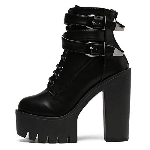 XX_OO stivali donna plateau stivali donna lunghi stivali neri stivaletti pianta larga donna stivali con frange stivali alti sopra il ginocchio in pelle stivali donna pioggia gomma (A60-Black,35)