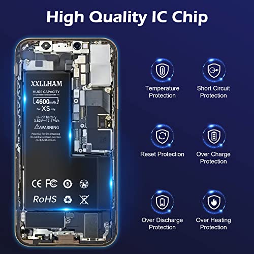 XXLLHAM Batteria Compatibile per iPhone XS (A1920, A2097, A2098, A2100) 4600mah Super Alta Capacità con Kit di Riparazione e Adesivo, 2 Anni di Garanzia