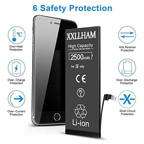XXLLHAM Batteria interna Alta Capacita Compatibile Per iPhone SE 2200mAh Con Kit Smontaggio Biadesivo Strumento Istruzione Manuale Pellicola Vetro Temperato