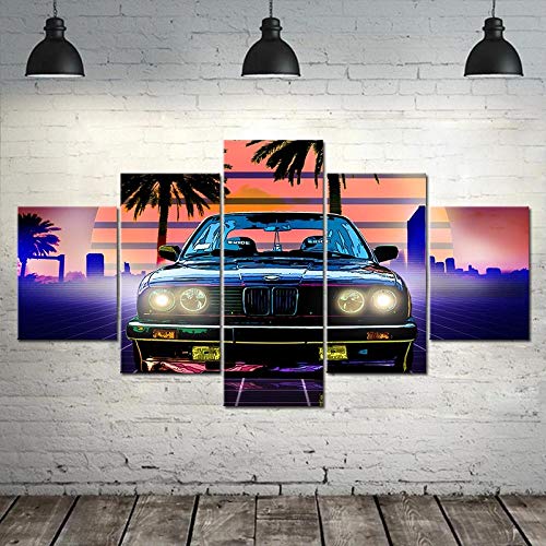 XXXCH Quadro su Tela - Cinque 5 Tele Auto Auto d'Epoca Classica Immagine di Arte della Parete Quadri Moderni Arredo per Soggiorno Salotto Camera da Letto Cucina Ufficio Bar Ristorante 200X100CM