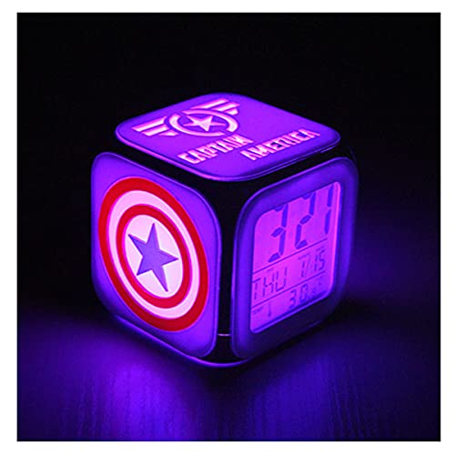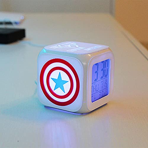 XY-M Supereroe Capitan America Creativo 3D Piccola Sveglia LED Luce Notturna Orologio Elettronico Orologio da Comodino Orologio da Camera da Letto-Ricarica USB