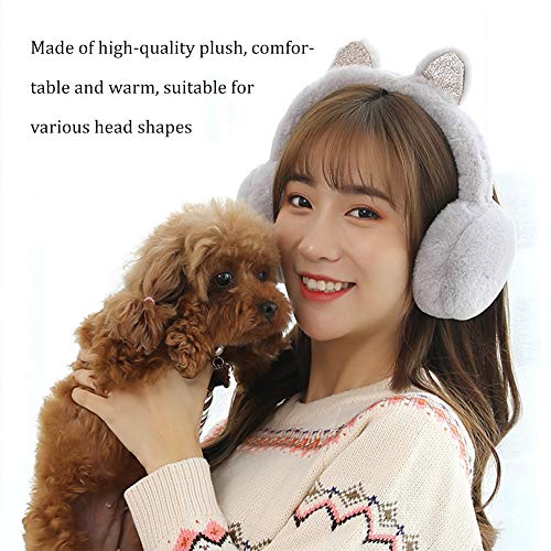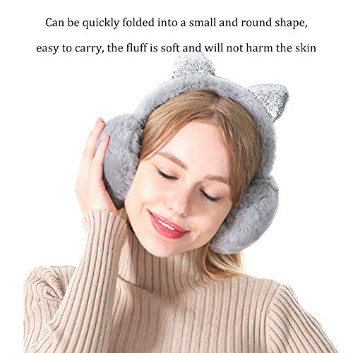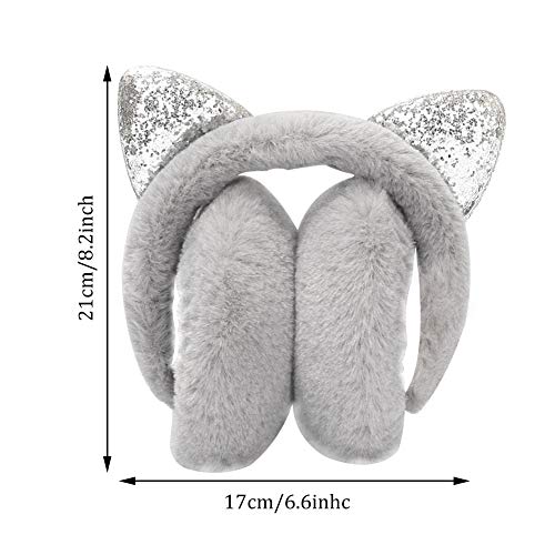 XYDZ Earmuffs Caldo D' inverno, Paraorecchie Dell'orecchio di Gatto Morbidi Pieghevoli Maglia Earmuffs con Paillettes per la Ragazza Peluche Paraorecchie Antivento Caldo Mantengono - Grigio