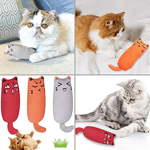 ☞Il pacchetto include: Il set di giocattoli Catnip include 3 pezzi di giocattoli per gatti in colore grigio, arancione e rosa. Ogni giocattolo ha una faccia da cartone animato carino e divertente. Il giocattolo per animali domestici del gatto è morbido e spesso, non facile da riempire o deformare.