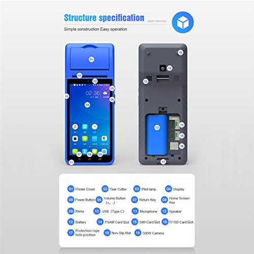 Xyfw Produttore di Etichette PDA Smart POS Palmare, Stampante per Ricevute Touchscreen per Fotocamera GPS Bluetooth WiFi Android 8.1 5.5" Scanner di Codici A Barre 2D