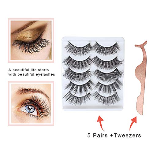 XYGK 5 paio di Ciglia finte, 3D Multipacco Ciglia professionali soffici con Pinzetta ad acciaio inossidabile per ciglia, Ciglia finte, Estensione da ciglia naturale & morbida ( trucco ).