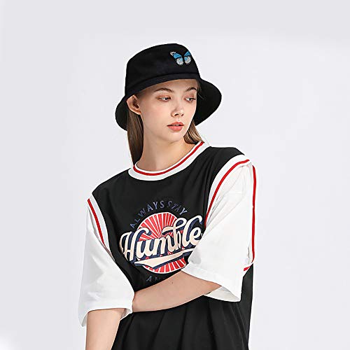 XYIYI Farfalla Nera Cappello da Pescatore Ricamato Moda Cappello da Sole per Donne Ragazze
