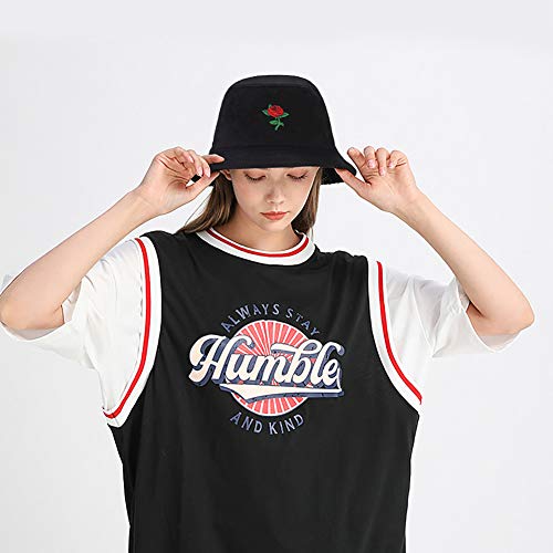 XYIYI Fiore Nero Cappello da Pescatore Ricamato Moda Cappello da Sole per Donne Ragazze