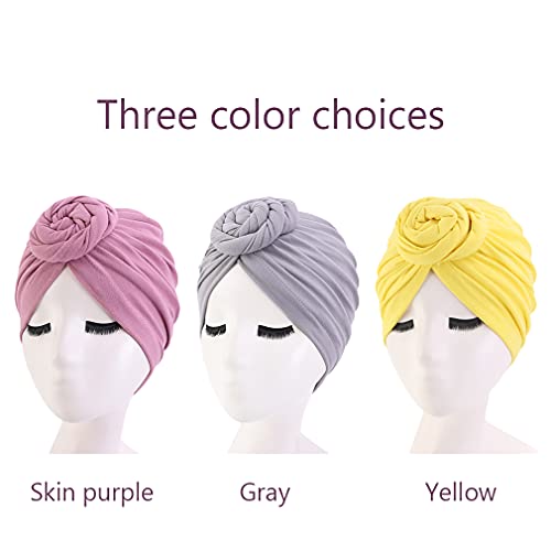 XYIYI 3 Pezzi Turbante Africano per Donne Nodo Pre-Legato Cappello a Cuffia Berretto Headwrap (Viola, Giallo, Grigio)