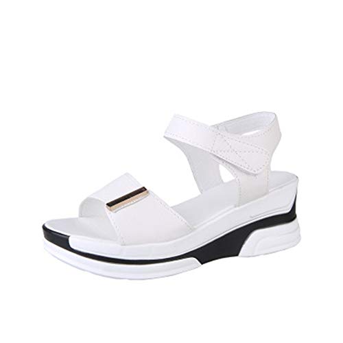 XYYK Scarpe estive donna Sandali con plateau Donna in morbida pelle Casual Open Toe Zeppe gladiatore Scarpe da donna Colore 5 34