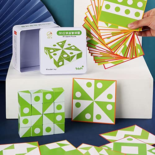 Xzbling Bambini Block Puzzle Cubi Giocattolo, Giocattoli educativi per la Matematica del Pensiero Spaziale Costruire cubi con Carte Geometriche, Gioco di logica con Blocchi di Legno Senza sbavature
