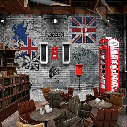 XZCWWH Retro Retro Di Londra E Dell'Europeo Cabina Telefonica Del Telefono Del Caffè Ristorante Parete Carta Da Parati Murale Manifesto Adesivo Da Parete Porta Adesivo,200Cm(W)×140Cm(H)