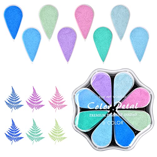 【8 colori】: Tamponi per timbri è composto da 8 diversi colori di luce, includono diverse sfumature di blu, verde e viola. È possibile mescolare più di 2 colori del tampone di inchiostro per produrre altri colori.