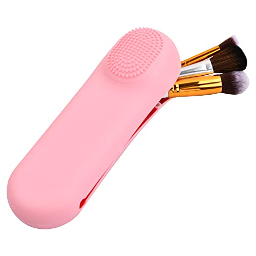 Xzeemo Organizer per Pennelli da Trucco in Silicone, Borsa per Pennelli da Trucco, Makeup Brush Holder con Chiusura Magnetica, Supporto per Pennelli da Trucco da Viaggio, Portatile Morbida (Rosa)