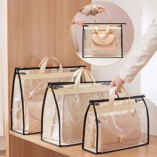 YAANBUNB 4 Pz Borsa per Borsetta Trasparente Antipolvere Organizer per Borsetta Custodia Antipolvere con Cerniera e Maniglia con Salvietta per Riporre Borse, Vestiti, Giocattoli (Beige)