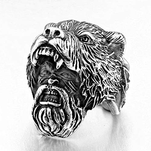 YABEME Anello da Uomo Vichingo, Acciaio Inossidabile Orso Guerriero Amuleto Gotico Celtico Pagano Motociclista Fresco Gioielli Islandesi, con Borsa Regalo Valknut,Argento,13
