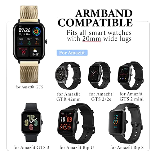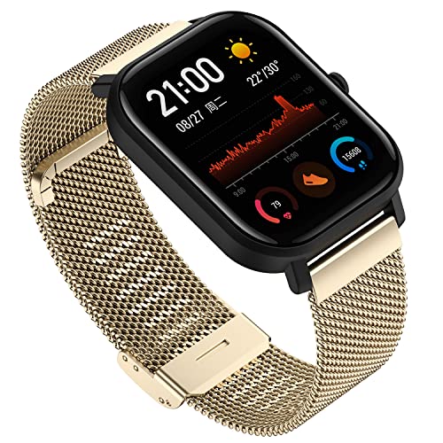 YABZOZ Cinturino Acciaio Inossidabile Metallo Compatibile con Amazfit GTS 4 Mini/GTS 3 / GTS/GTS 2 / GTS 2e / GTS 2 Mini/GTR 42mm / Bip/Pop/Pop PRO Cinturino (Oro S)