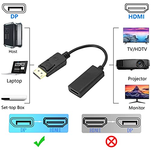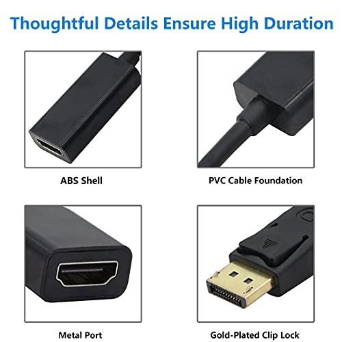 YACSEJAO Adattatore DisplayPort a HDMI, Convertitore da maschio a HDMI femmina DisplayPort (DP) placcato in oro, compatibile con proiettore, desktop, laptop, monitor, altro