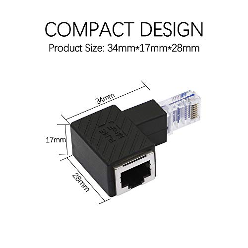 YACSEJAO Adattatore Ethernet RJ45 Cat5e / Cat6 , 2Pack 90 gradi Ethernet RJ45 / 8P8C Supporto adattatore ad angolo retto maschio-femmina Cat6 / Cat5e ((giù))