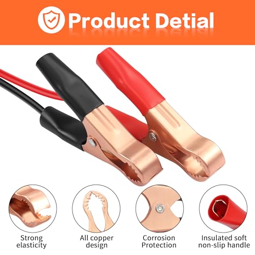 Materiale di alta qualità: filo di rame resistente 100% rosso e nero da 14 AWG con due clip a coccodrillo. Il rosso è positivo e il nero è negativo.