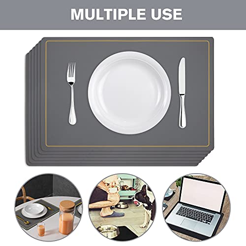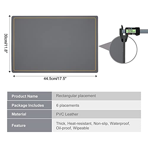 YADIMI Tovaglietta in Pelle, Set di 6 Tovaglietta per Cucina, Tovagliette Lavabile Place Table, Antiscivolo Resistenti allo Sporco e Resistenti al Calore (grigio)