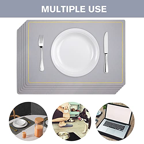 YADIMI Tovaglietta in Pelle, Set di 6 Tovaglietta per Cucina, Tovagliette Lavabile Place Table, Antiscivolo Resistenti allo Sporco e Resistenti al Calore (argento)