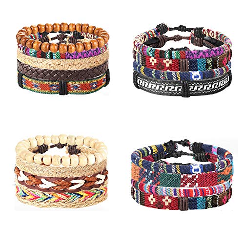 YADOCA 18 Pezzi Bracciali in Pelle Intrecciata per Uomo Donna Intrecciata Bracciale Avvolgente Perline in Legno Bracciali Tribali Etnici Regolabili