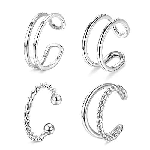 YADOCA 4 Pezzi Orecchini in Argento Sterling 925 per Donna Uomo Ear Cuff Orecchini Senza Buco Orecchini a Clip Orecchini Finti Piercing Helix Cartilagine Orecchino