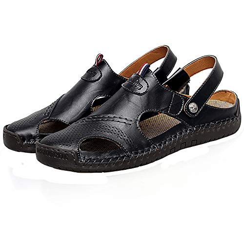 Yaer Sandali in Pelle da Uomo All'aperto, Cucitura a Mano Sandali Chiusi Pantofole da Spiaggia (45 EU, Nero)
