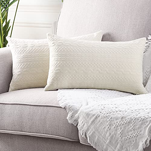 Yaertun Federe Cuscini in Super morbido per Divano,Copricuscini Arredo Casa Moderni,Cotone Fodere Cuscino in Tinta Unita Eleganti per Camera da Letto Salotto Sedia,2 Pezzi,30x50CM,Beige