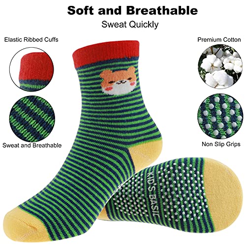 Yafane 12 Paia Ragazzo Bambino Calzini Antiscivolo Neonato Cotone Calze per Ragazzi Bambini 0-5 Anni (1-3 anni)