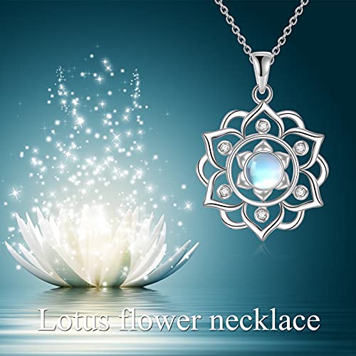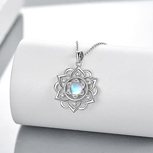 YAFEINI Collana in argento Sterling 925 con ciondolo a forma di loto per yoga, Metallo, Pietra di luna