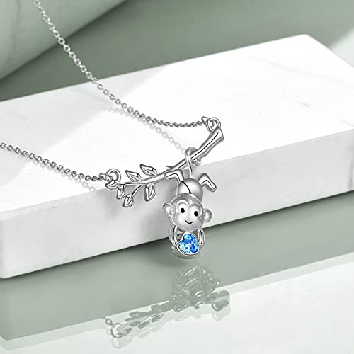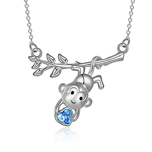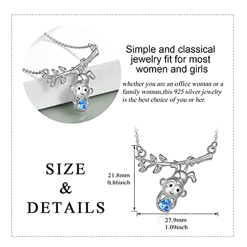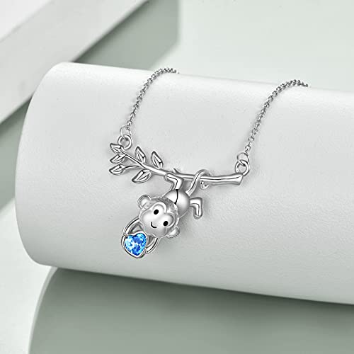 YAFEINI Scimmia Collana per le Donne con Cristallo Blu 925 Argento Sterling Ornamentale Dolce Animale Charm Pendant Collana Gioielli per Lei