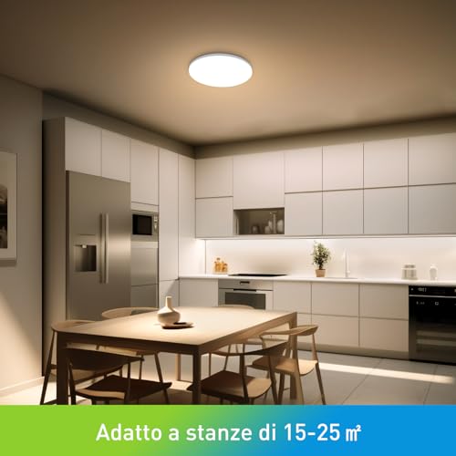 【Super Luminoso ed Efficiente】La plafoniera led soffitto moderna da 24W fornisce una luminosità e un'illuminazione efficiente con un consumo energetico minimo. Può risparmiare il 85% di energia ed ha una durata di circa 30,000 ore senza la necessità di sostituire frequentemente la lampadina. La temperatura del colore può essere cambiata direttamente tramite l'interruttore a parete, il che lo rende molto adatto all'installazione in camere da letto, cucine, bagni, ristoranti e balconi.