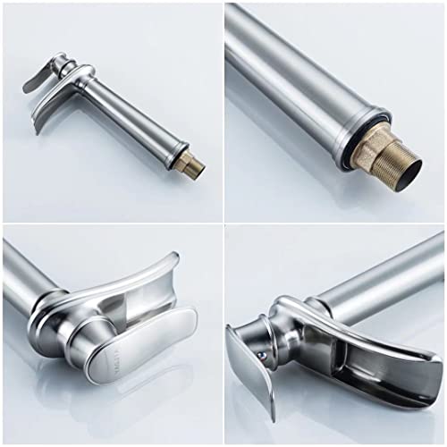 Materiale di alta qualità: il rubinetto da bagno a cascata in ottone robusto, superficie in nichel spazzolato opaco di campagna, grazie allo spessore multiplo dello strato galvanico, eccellente resistenza all'ossidazione e all'abrasione, mantiene la luce come nuovo.