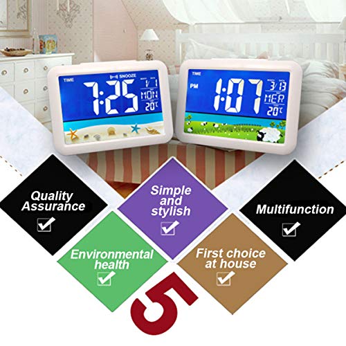 Yagosodee Sveglia Digitale,Sveglia da Comodino con 8 suonerie opzionali,LED Sveglia da Comodino con Temperature,Funzione Snooze,USB Ricaricare (Mare)