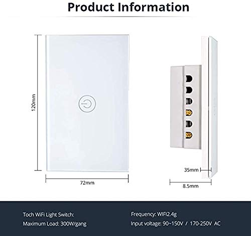Yagusmart US Interruttore Intelligente Luce Wireless WiFi da Muro, Nessun filo Neutro Richiesto, Compatibile con Amazon Alexa, Google Home e IFTTT(1 gang)