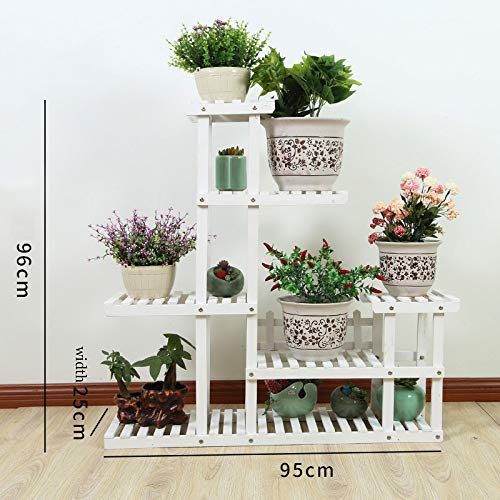 YAHAO Portavasi Scaffali Porta Piante Fiori da Interni Esterno Giardino in Legno Supporti per Piante Fioriera Vaso Scaffale Patio Balcone Espositore Decorativa,White