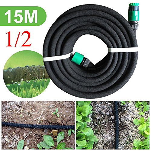 Yahee Tubo di acqua flessibile da giardino Tubo per irrigazione a goccia Tubo di infiltrazione 1/2 pollice (15 m)