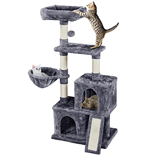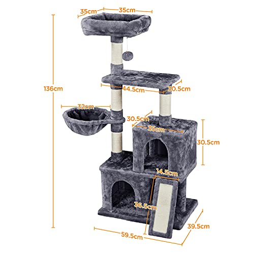 Yaheetech Albero Tiragraffi per Gatti Giocattolo in Sisal Naturale per Gattini 59,5 x 39,5 x 136 cm Grigio Scuro